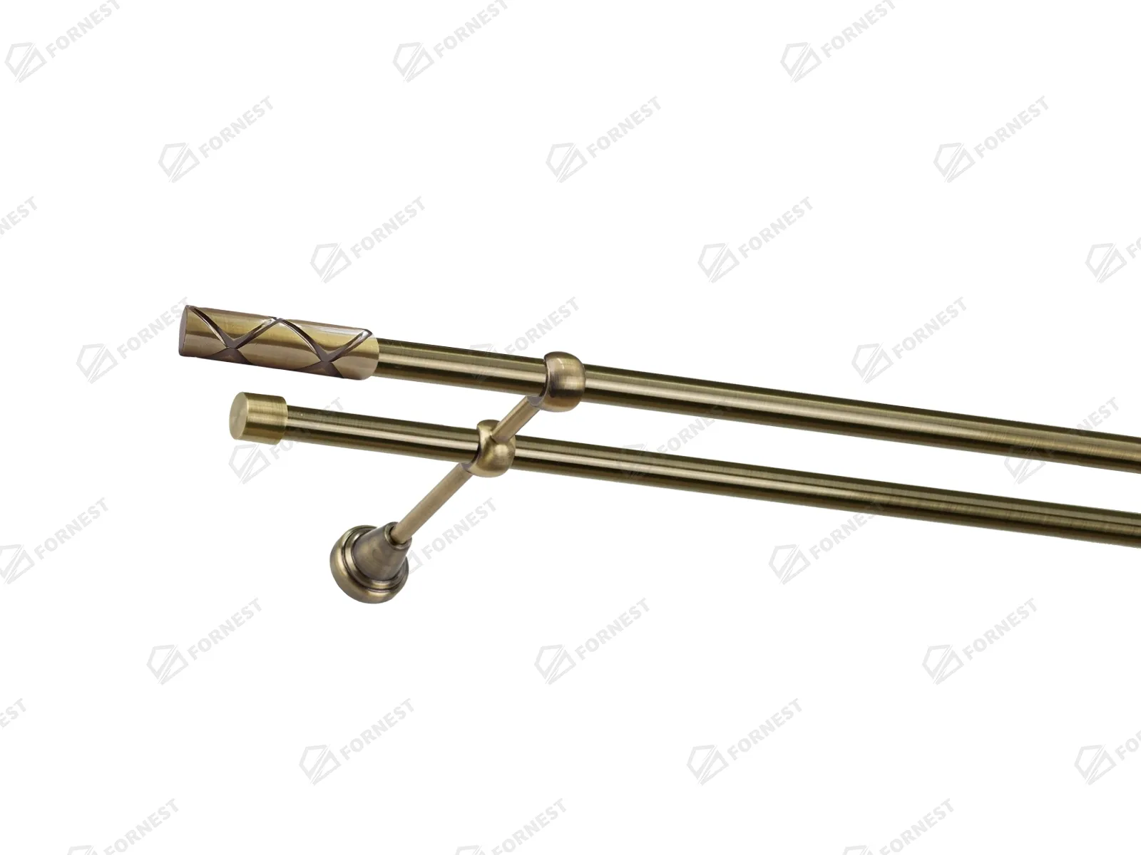 Dvojradová garniža s povrchovou úpravou - odtieň antik (matné zlato). Celokovové garniže s kvalitnou povrchovou úpravou - galvanické pokovovanie. Galvanické pokovovanie zabezpečuje vyššiu povrchovú tvrdosť, zvýšenú dolnosť voči poškriabaniu, hladký povrch. Dodávané sú v kompletoch.