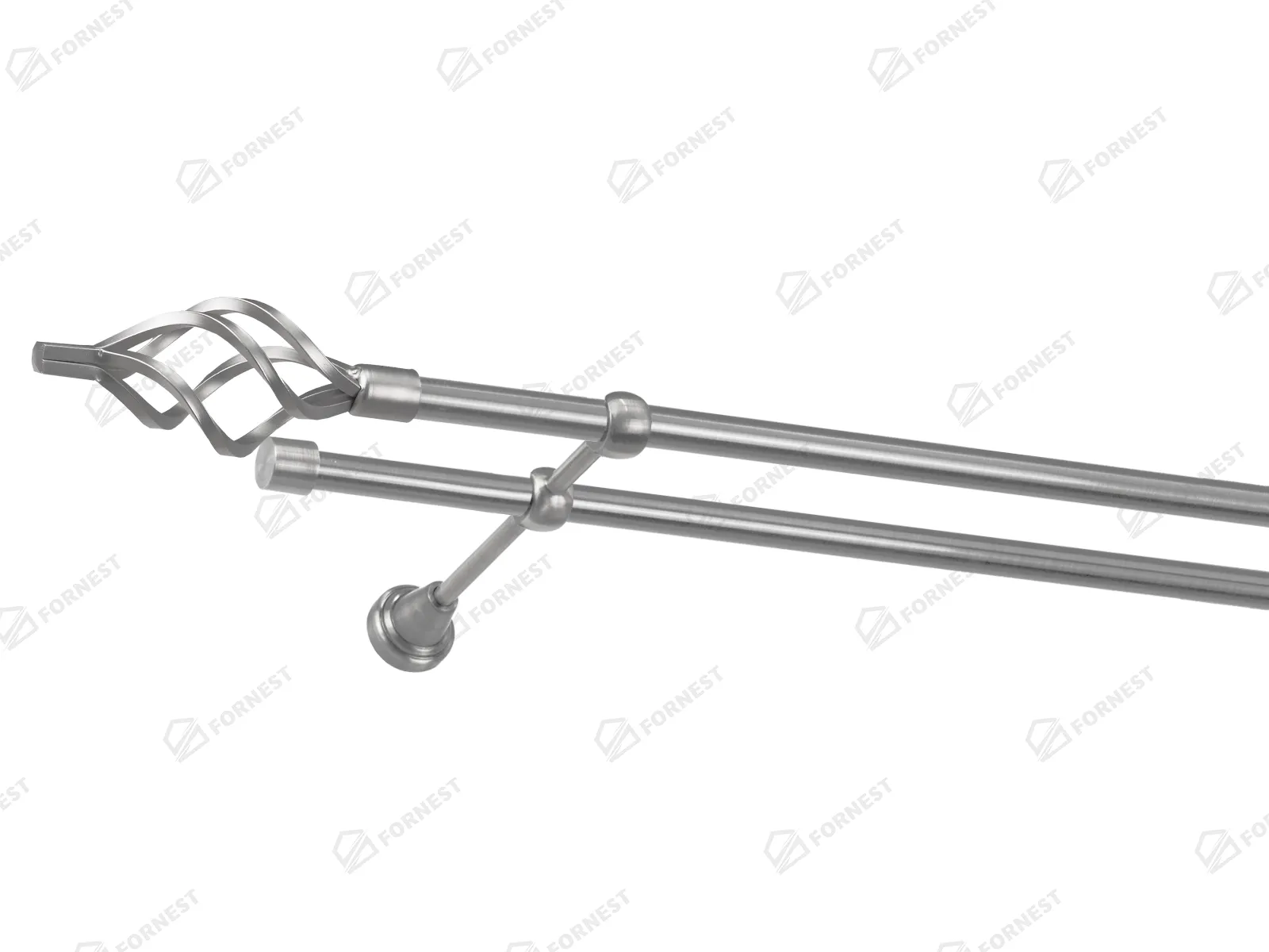 Dvojradová garniža s povrchovou úpravou - odtieň satin-nikel (matné striebro). Celokovové garniže s kvalitnou povrchovou úpravou - galvanické pokovovanie. Galvanické pokovovanie zabezpečuje vyššiu povrchovú tvrdosť, zvýšenú dolnosť voči poškriabaniu, hladký povrch. Dodávané sú v kompletoch.
