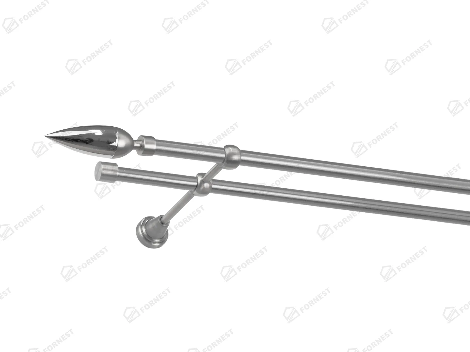 Dvojradová garniža s povrchovou úpravou - odtieň satin-nikel (matné striebro). Celokovové garniže s kvalitnou povrchovou úpravou - galvanické pokovovanie. Galvanické pokovovanie zabezpečuje vyššiu povrchovú tvrdosť, zvýšenú dolnosť voči poškriabaniu, hladký povrch. Dodávané sú v kompletoch.