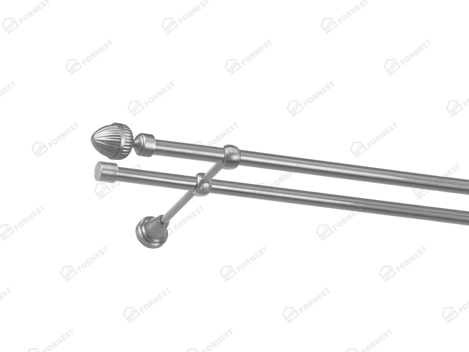 Dvojradová garniža s povrchovou úpravou - odtieň satin-nikel (matné striebro). Celokovové garniže s kvalitnou povrchovou úpravou - galvanické pokovovanie. Galvanické pokovovanie zabezpečuje vyššiu povrchovú tvrdosť, zvýšenú dolnosť voči poškriabaniu, hladký povrch. Dodávané sú v kompletoch.