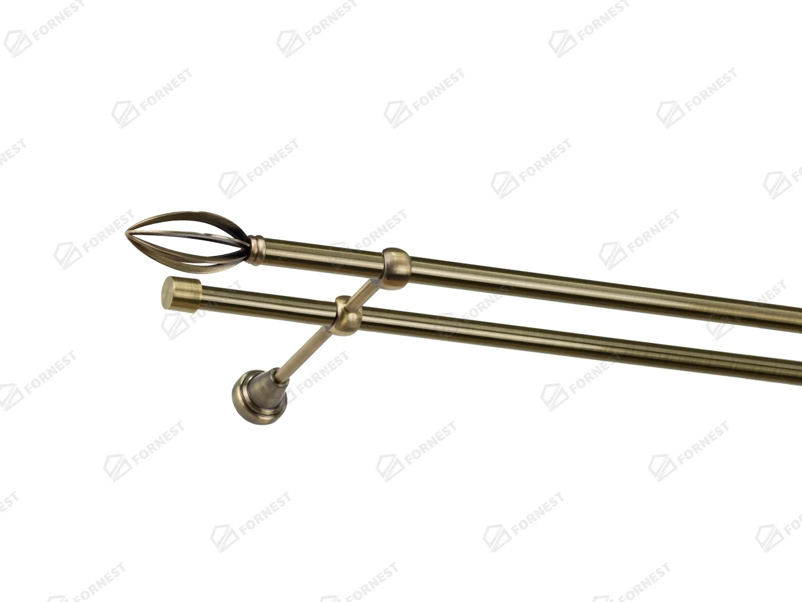 Dvojradová garniža s povrchovou úpravou - odtieň antik (matné zlato). Celokovové garniže s kvalitnou povrchovou úpravou - galvanické pokovovanie. Galvanické pokovovanie zabezpečuje vyššiu povrchovú tvrdosť, zvýšenú dolnosť voči poškriabaniu, hladký povrch. Dodávané sú v kompletoch.
