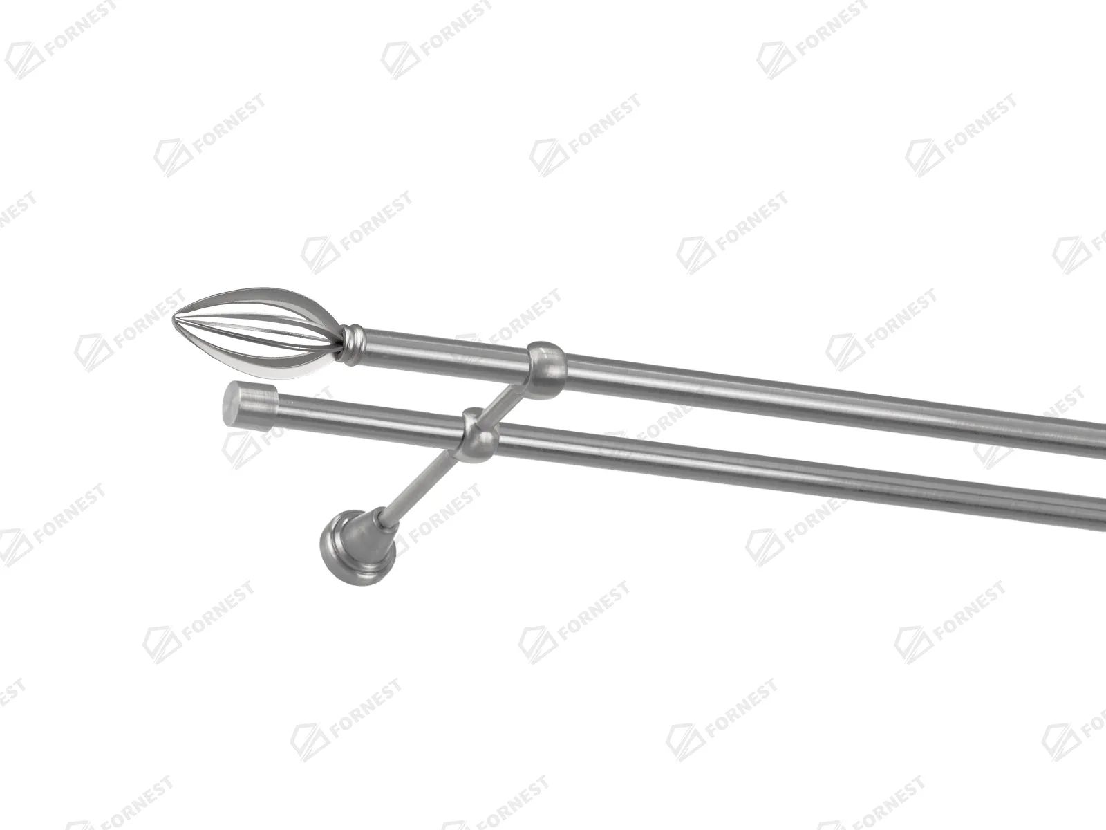 Dvojradová garniža s povrchovou úpravou - odtieň satin-nikel (matné striebro). Celokovové garniže s kvalitnou povrchovou úpravou - galvanické pokovovanie. Galvanické pokovovanie zabezpečuje vyššiu povrchovú tvrdosť, zvýšenú dolnosť voči poškriabaniu, hladký povrch. Dodávané sú v kompletoch.