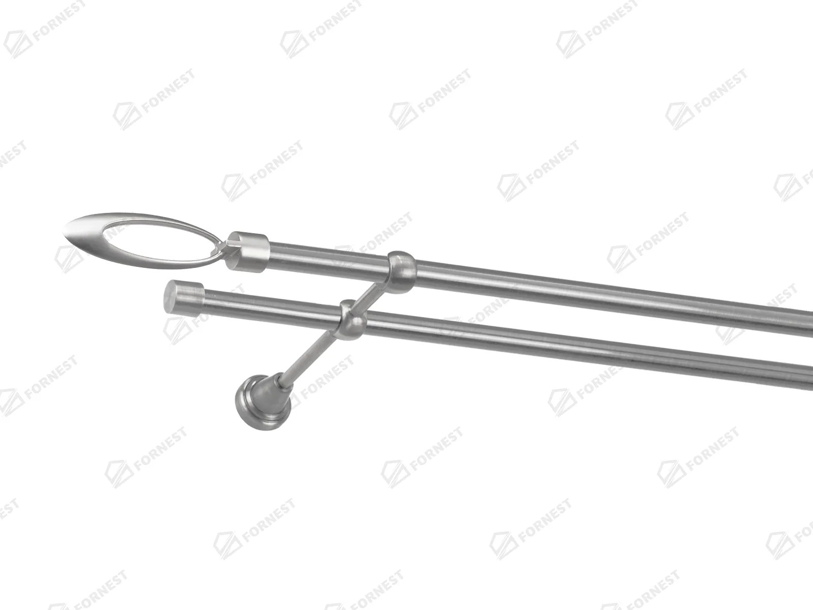 Dvojradová garniža s povrchovou úpravou - odtieň satin-nikel (matné striebro). Celokovové garniže s kvalitnou povrchovou úpravou - galvanické pokovovanie. Galvanické pokovovanie zabezpečuje vyššiu povrchovú tvrdosť, zvýšenú dolnosť voči poškriabaniu, hladký povrch. Dodávané sú v kompletoch.