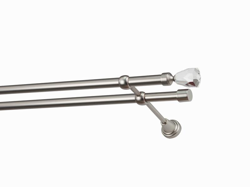 Dvojradová garniža s povrchovou úpravou - odtieň satin-nikel (matné striebro). Celokovové garniže s kvalitnou povrchovou úpravou - galvanické pokovovanie. Galvanické pokovovanie zabezpečuje vyššiu povrchovú tvrdosť, zvýšenú dolnosť voči poškriabaniu, hladký povrch. Dodávané sú v kompletoch.