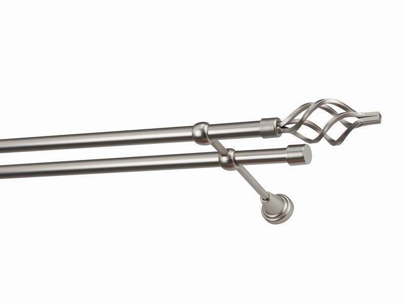 Dvojradová garniža s povrchovou úpravou - odtieň satin-nikel (matné striebro). Celokovové garniže s kvalitnou povrchovou úpravou - galvanické pokovovanie. Galvanické pokovovanie zabezpečuje vyššiu povrchovú tvrdosť, zvýšenú dolnosť voči poškriabaniu, hladký povrch. Dodávané sú v kompletoch.