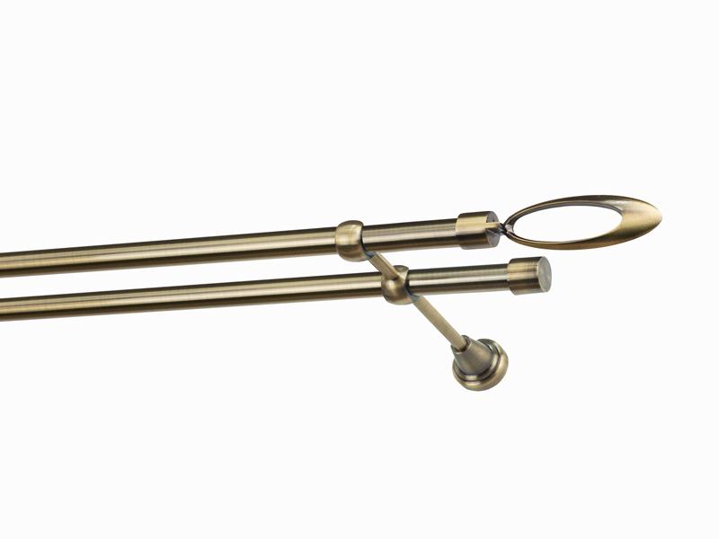 Dvojradová garniža s povrchovou úpravou - odtieň antik (matné zlato). Celokovové garniže s kvalitnou povrchovou úpravou - galvanické pokovovanie. Galvanické pokovovanie zabezpečuje vyššiu povrchovú tvrdosť, zvýšenú dolnosť voči poškriabaniu, hladký povrch. Dodávané sú v kompletoch.