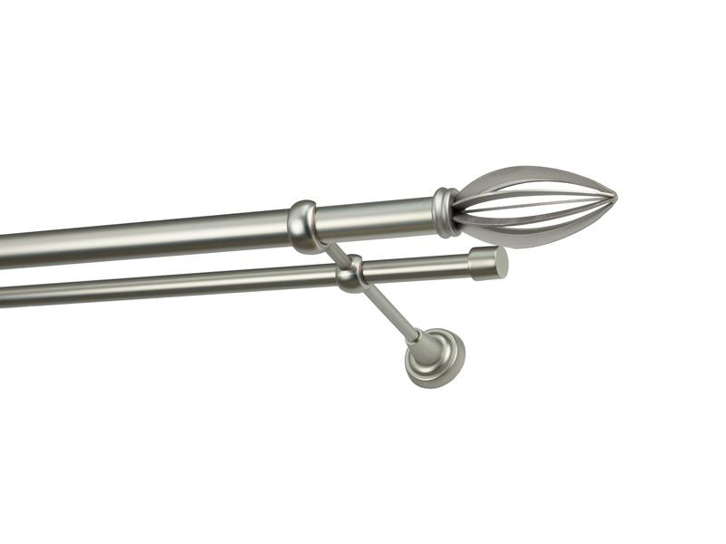 Dvojradová garniža s povrchovou úpravou - odtieň satin-nikel (matné striebro). Celokovové garniže s kvalitnou povrchovou úpravou - galvanické pokovovanie. Galvanické pokovovanie zabezpečuje vyššiu povrchovú tvrdosť, zvýšenú dolnosť voči poškriabaniu, hladký povrch. Dodávané sú v kompletoch.