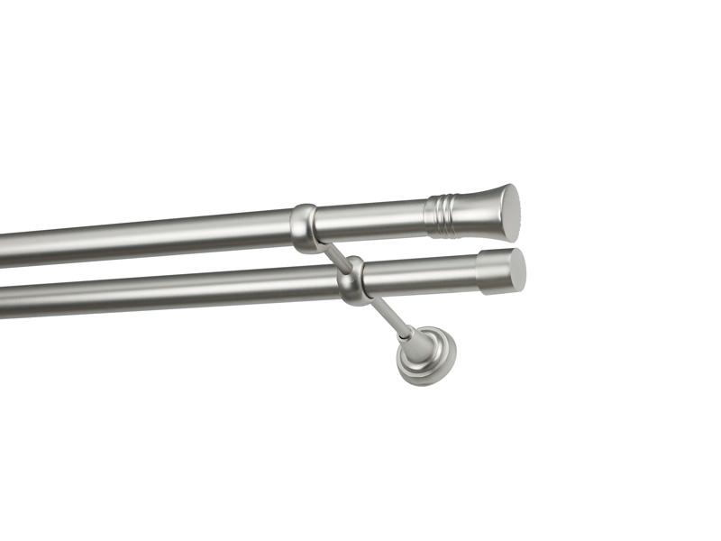 Dvojradová garniža s povrchovou úpravou - odtieň satin-nikel (matné striebro). Celokovové garniže s kvalitnou povrchovou úpravou - galvanické pokovovanie. Galvanické pokovovanie zabezpečuje vyššiu povrchovú tvrdosť, zvýšenú dolnosť voči poškriabaniu, hladký povrch. Dodávané sú v kompletoch.