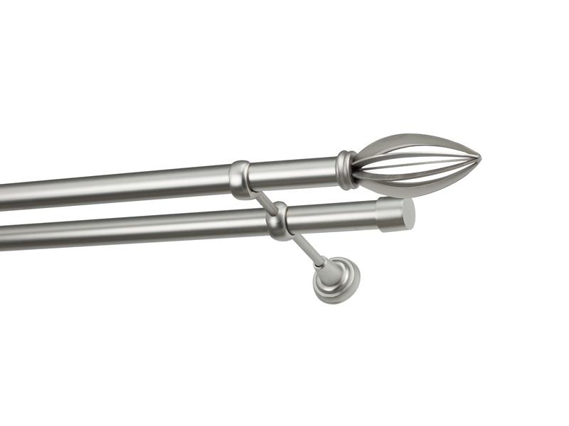Dvojradová garniža s povrchovou úpravou - odtieň satin-nikel (matné striebro). Celokovové garniže s kvalitnou povrchovou úpravou - galvanické pokovovanie. Galvanické pokovovanie zabezpečuje vyššiu povrchovú tvrdosť, zvýšenú dolnosť voči poškriabaniu, hladký povrch. Dodávané sú v kompletoch.