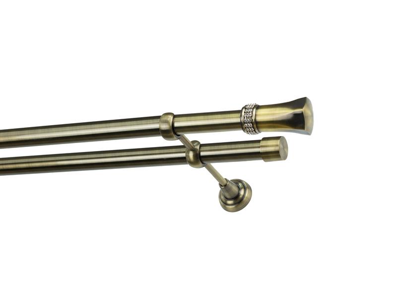 Dvojradová garniža s povrchovou úpravou - odtieň antik (matné zlato). Celokovové garniže s kvalitnou povrchovou úpravou - galvanické pokovovanie. Galvanické pokovovanie zabezpečuje vyššiu povrchovú tvrdosť, zvýšenú dolnosť voči poškriabaniu, hladký povrch. Dodávané sú v kompletoch.