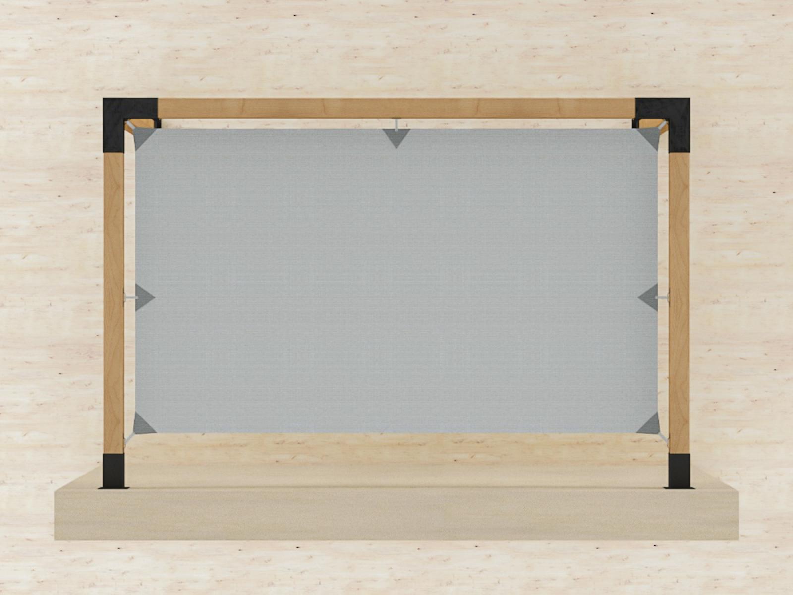 - Podľa roztiahnutej plachty v miestach upínacích praciek na plachte priskrutkujte na hranol priame upínače plachty.
