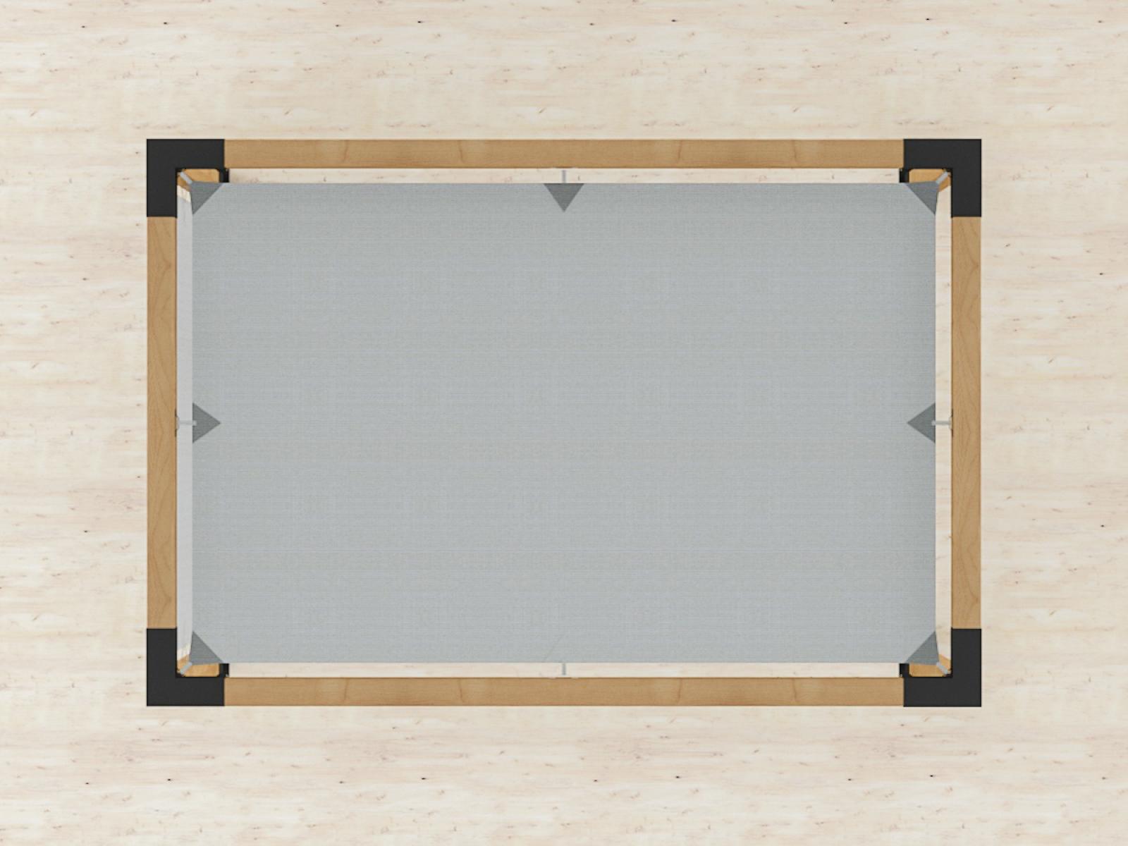 - Podľa roztiahnutej plachty v miestach upínacích praciek na plachte priskrutkujte na hranol priame upínače plachty.